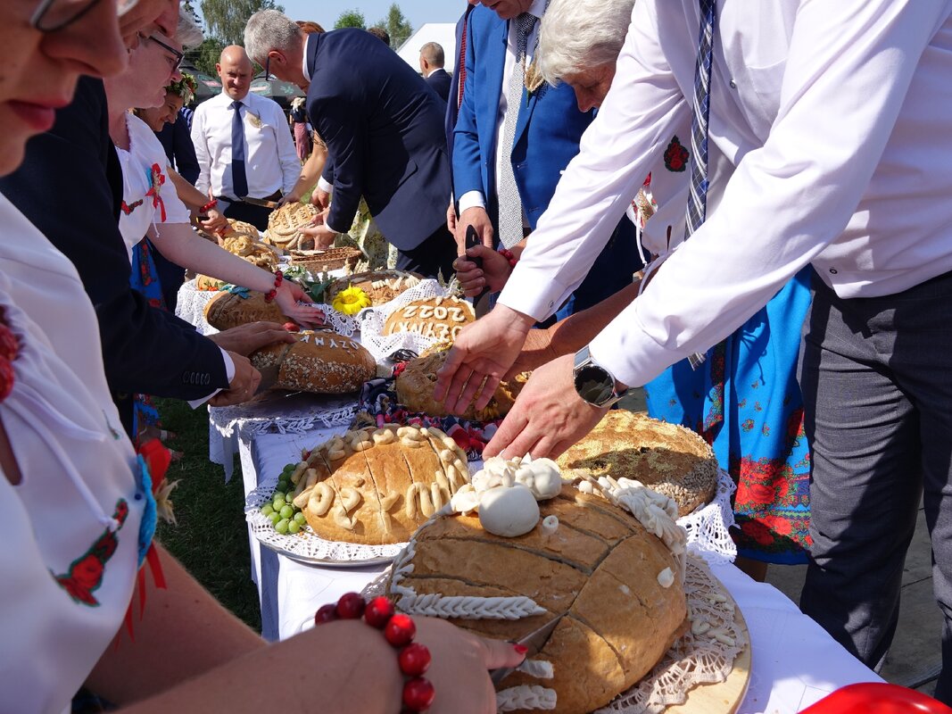 Kulminacyjnym momentem dożynek był tradycyjny ceremoniał i kultywowany zwyczaj łamania się chlebem. „Przyrzekamy dzielić go między wszystkich mądrze i sprawiedliwie, tak, aby nikomu go nie zabrakło” – mówili ze sceny dożynkowi Gospodarze, a włodarze poszczególnych miast i gmin Powiatu Garwolińskiego dzielili wśród uczestników dożynek przyniesiony przez siebie bochen chleba. Całość ceremoniału dopełnił wspaniały występ Zespołu Ludowego z Gończyc.