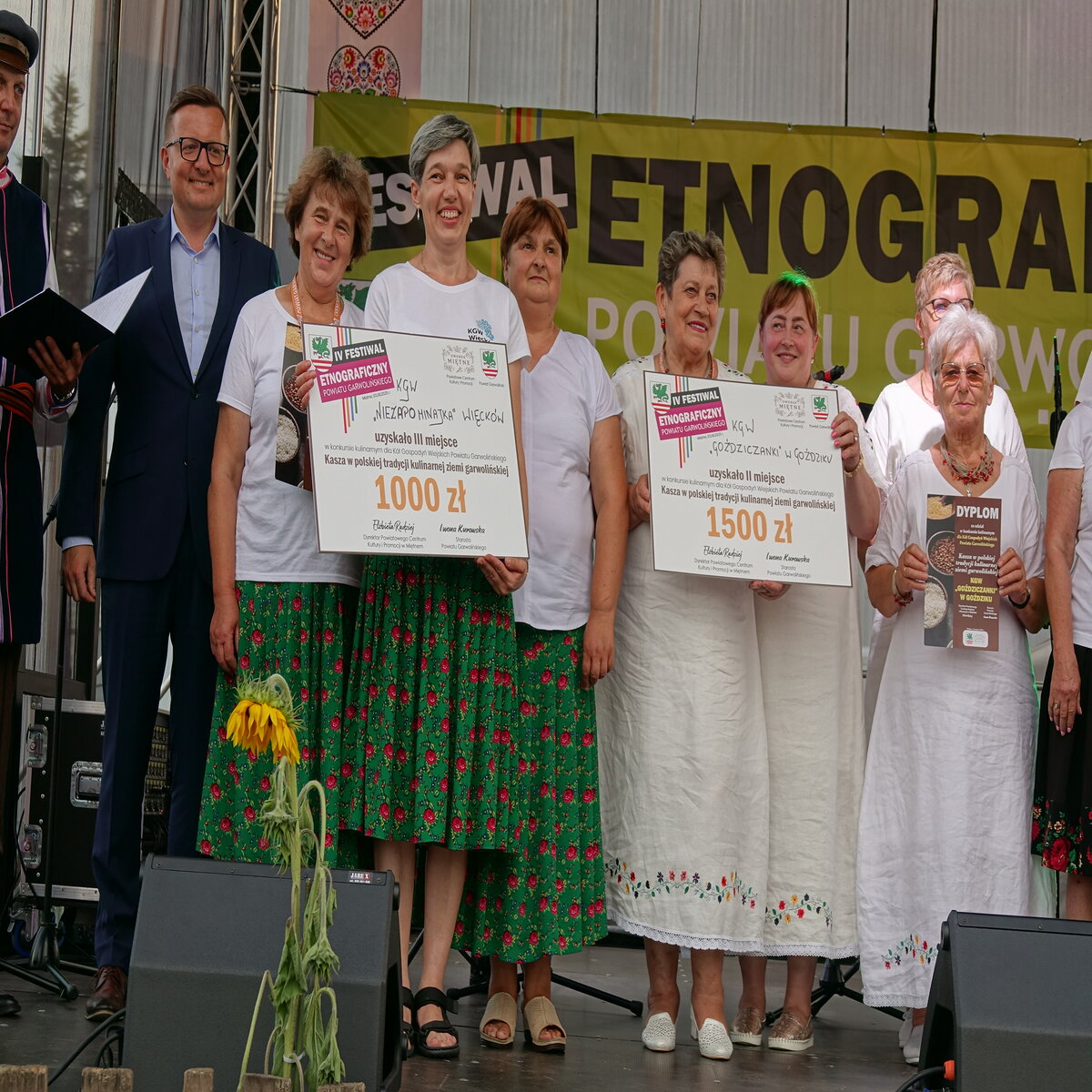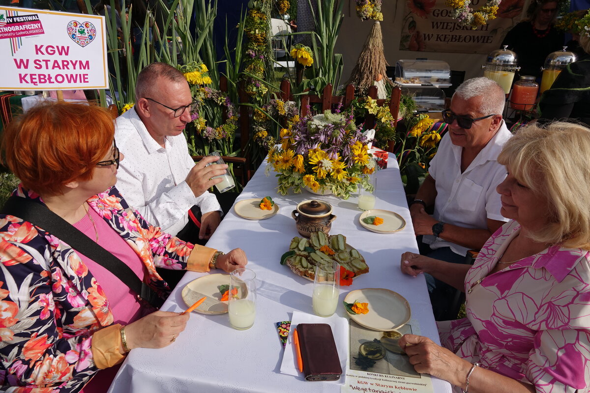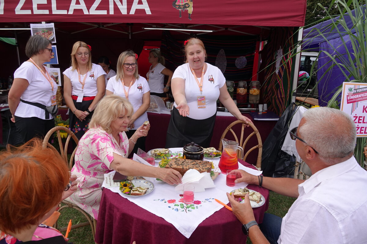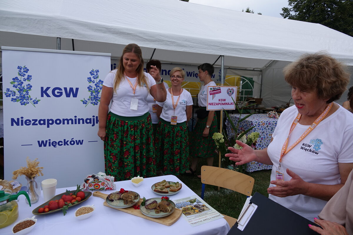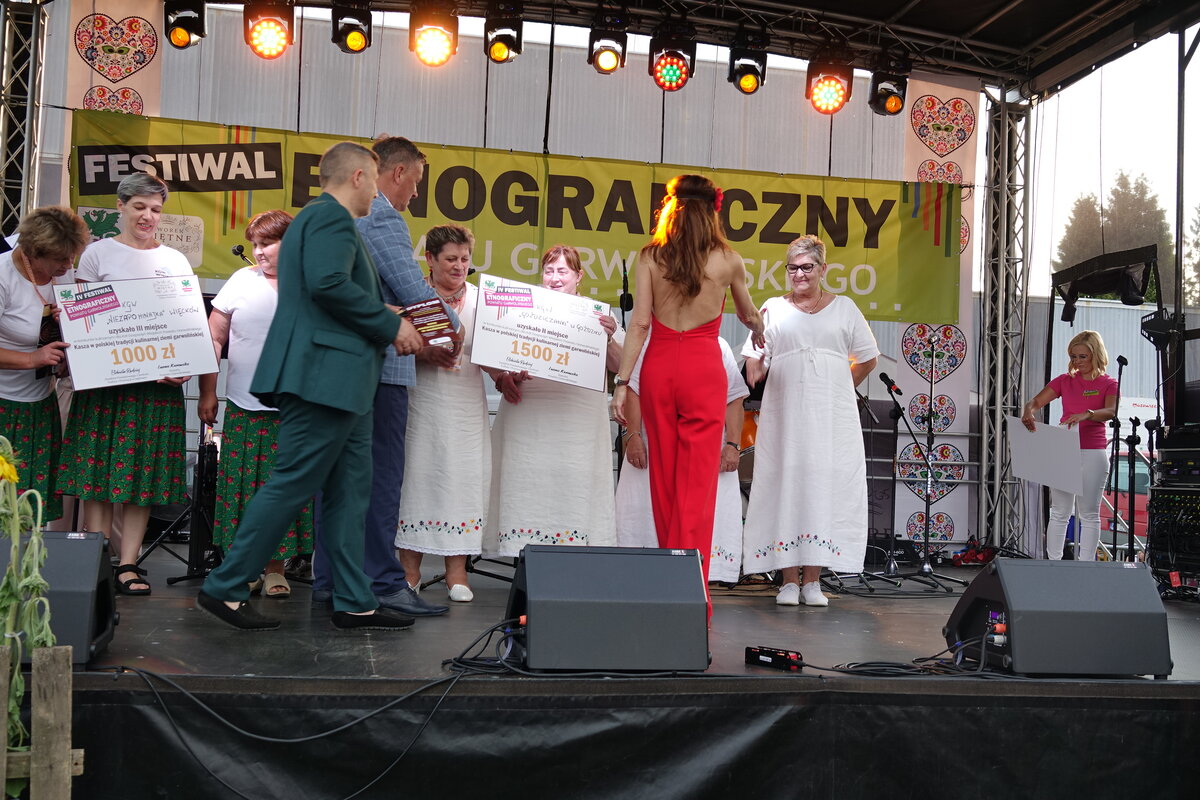 Drugi etap rozgrywał się na oczach publiczności w przepięknej scenerii festiwalu w Miętnem. To właśnie tutaj, wśród dźwięków ludowej muzyki, kolorowych strojów i niezwykłej atmosfery folkloru, komisja konkursowa w składzie: Jolanta Nafalska, Krystyna Antolak oraz Tomasz Wesołowski, miała niezwykle trudne zadanie — wyłonić tę jedną, najlepszą potrawę z kaszy, która zasłuży na najwyższe laury. Zapachy kasz, przypraw, leśnych grzybów i duszonej kapusty unosiły się nad Miętnem, przyciągając tłumy gości i mieszkańców.