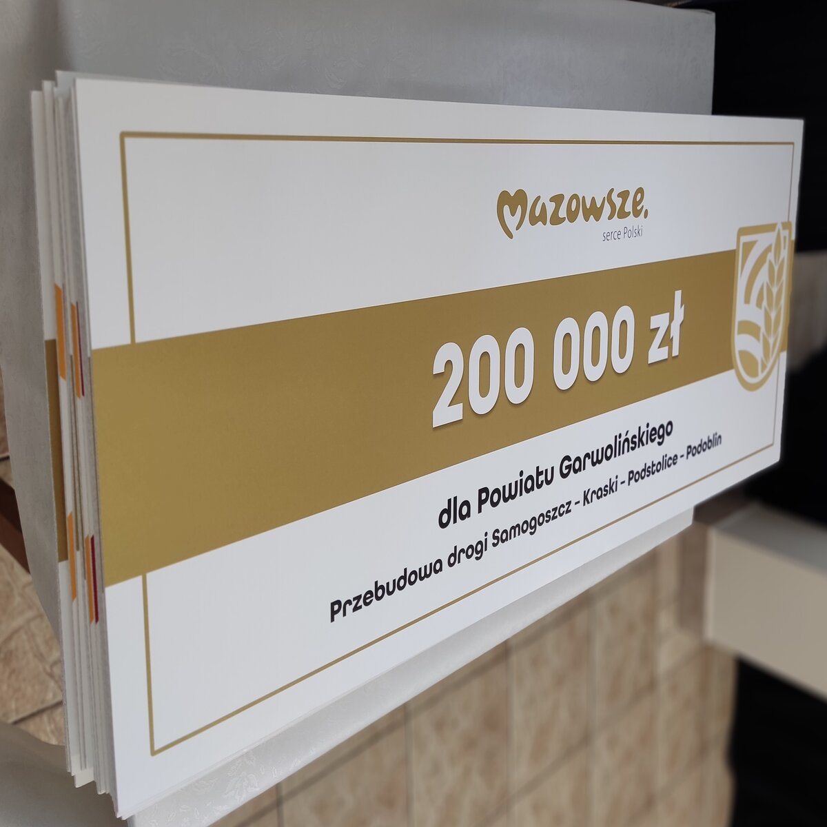 Zadanie otrzymało dofinansowanie w wysokości 200 000,00zł ze środków finansowych budżetu Województwa Mazowieckiego na zadania z zakresu budowy i modernizacji dróg dojazdowych do gruntów rolnych.
