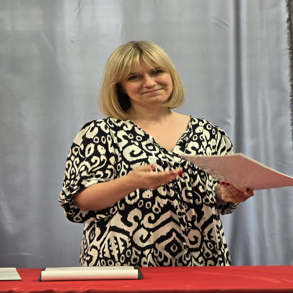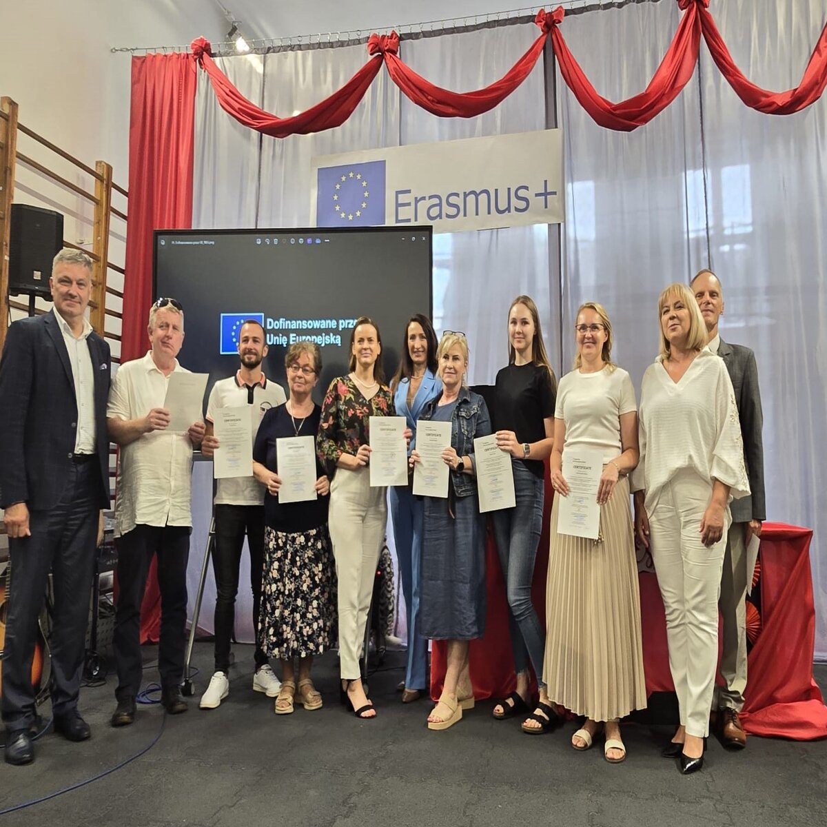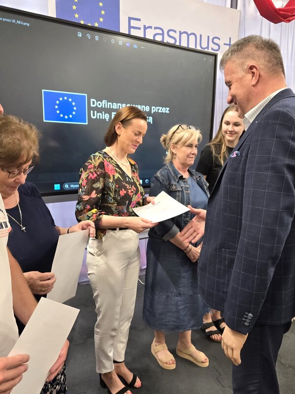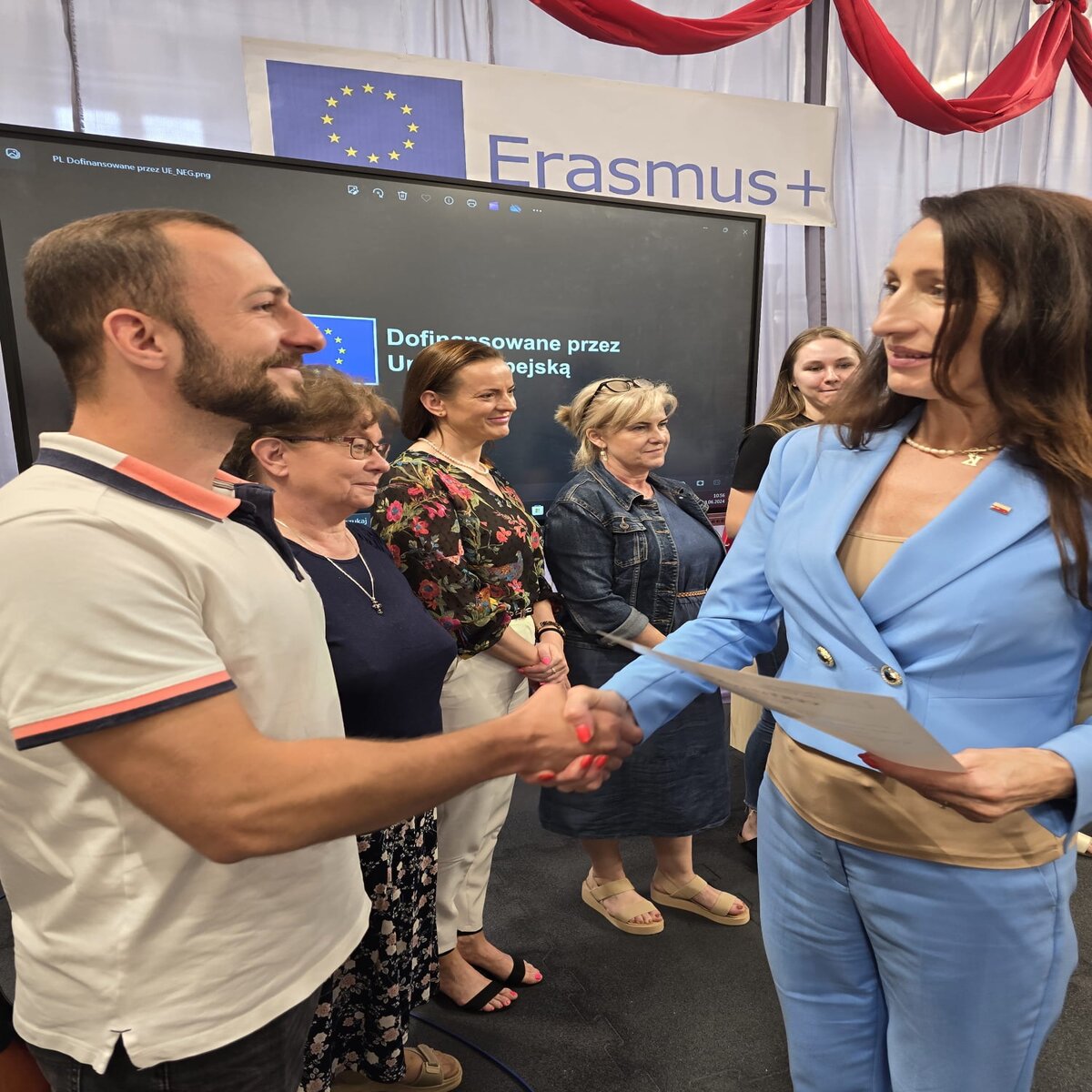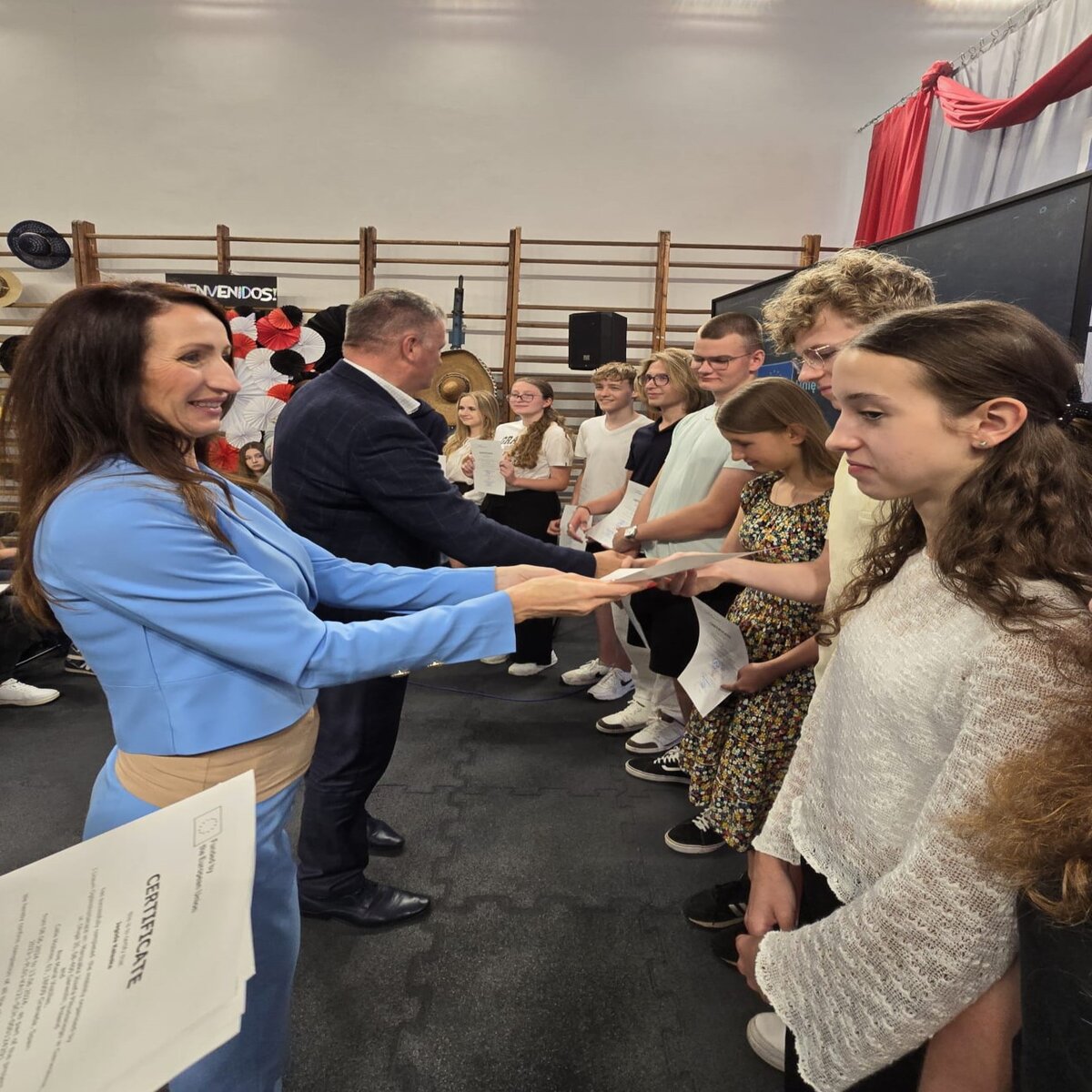 Pani Iwona Kurowska - Starosta, Poseł na Sejm RP IX Kadencji oraz Pan Grzegorz Woźniak Poseł RP wręczyli uczestnikom certyfikaty potwierdzające udział w mobilności i zdobycie nowych kompetencji. .