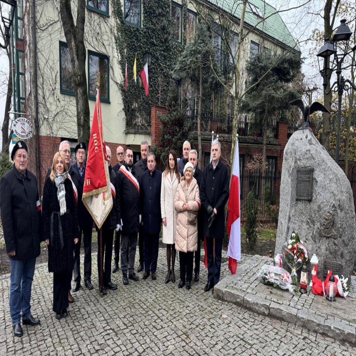 Pod pomnikiem Marszałka Józefa Piłsudskiego, w atmosferze ciszy i skupienia, przedstawiciele samorządu powiatowego na czele ze Starostą Iwoną Kurowską, Posłem na Sejm RP Grzegorzem Woźniakiem oraz przedstawicielami Miasta Garwolin złożyli kwiaty i zapalili znicze jako symbol pamięci, wdzięczności i szacunku wobec tych, którzy w czasach próby nie ugięli się przed przemocą i niesprawiedliwością.