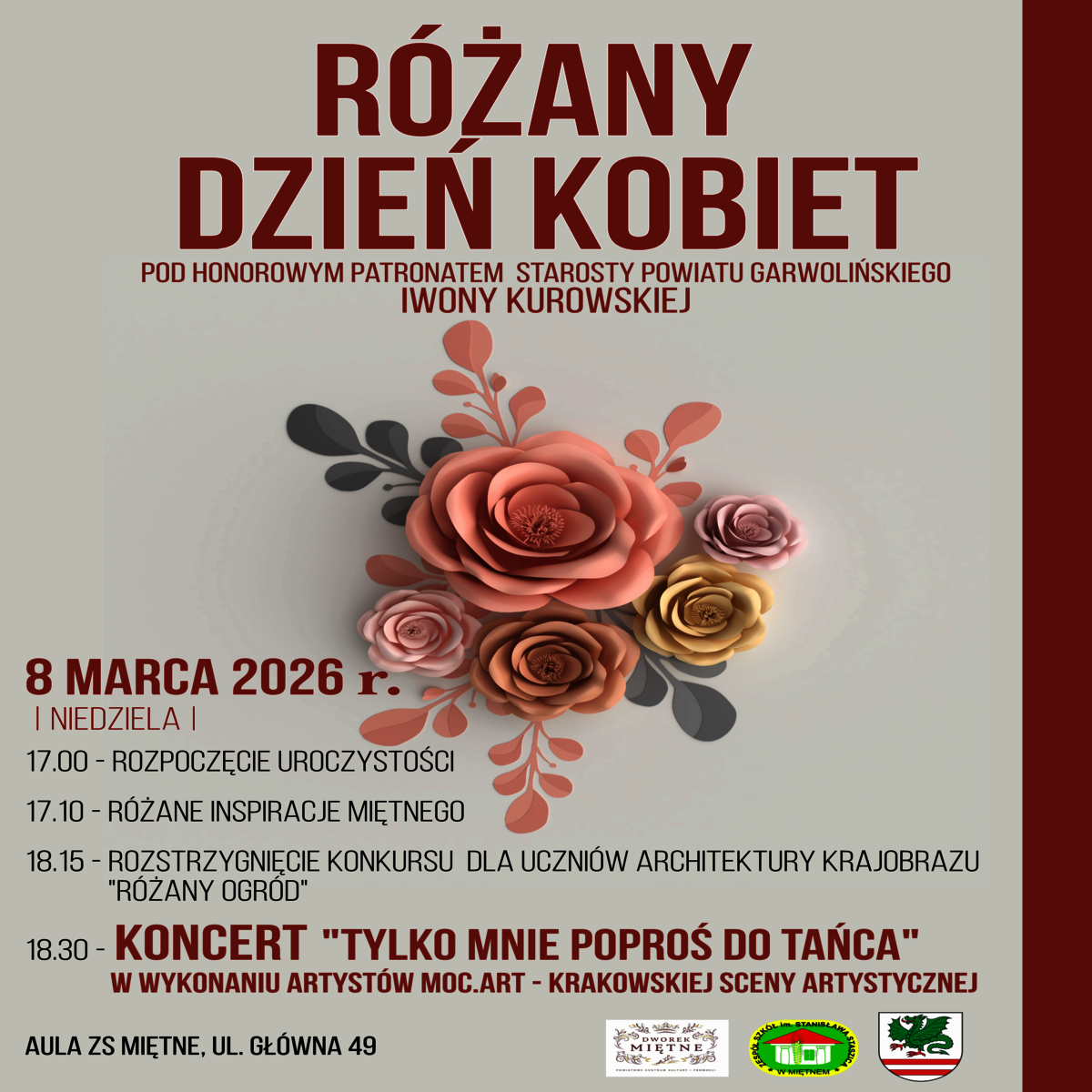 Zapraszamy wszystkich Mieszkańców, a szczególnie Kobiety – przyjdźcie, by wspólnie przeżyć ten niezwykły koncert, poczuć emocje i dać się porwać muzyce. Niech ten wieczór będzie pełen radości, wzruszeń i wspólnego świętowania!