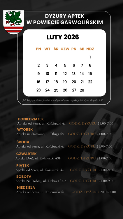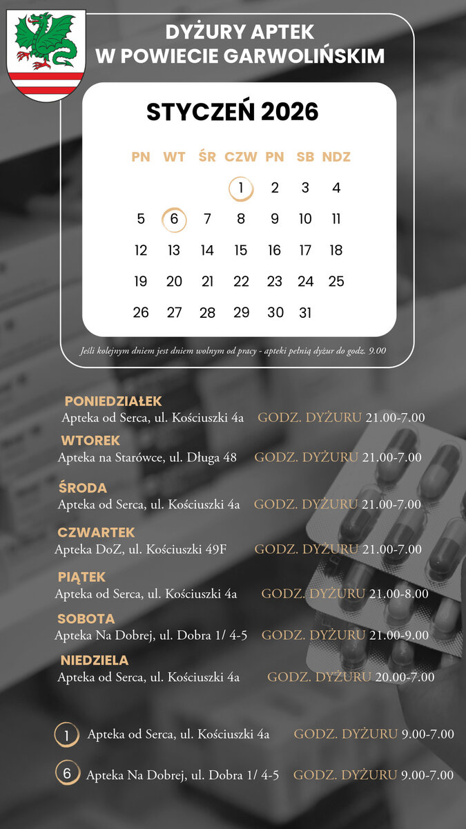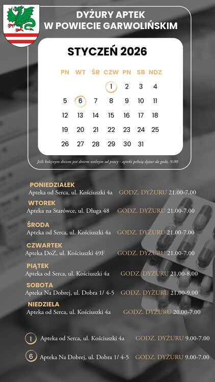 Poniżej przedstawiamy aktualny harmonogram dyżurów aptek w 2026 r.